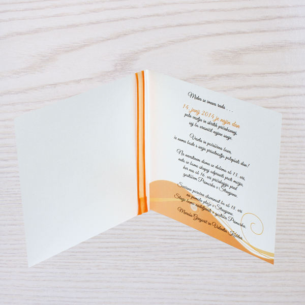 Vabilo je natisnjeno na mat 300g papir ali na 300g pearl papir, ki je nekoliko svetleč (izberete lahko pod okencem za tekst).