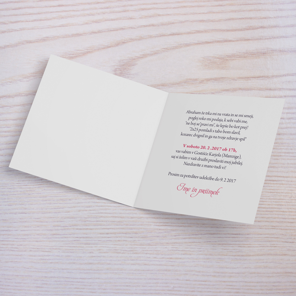 Poljubno lahko prilagodite tekst na naslovnici in v notranjosti vabila.