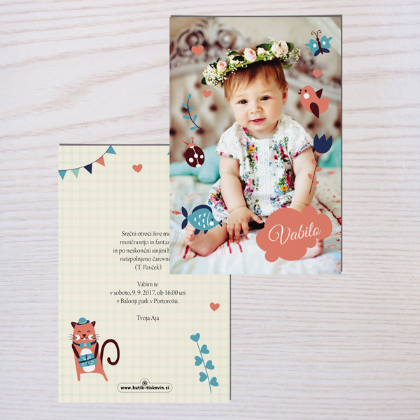 Vabilo za otroke dekliško.Poljubno lahko prilagodite tekst.Vabilo 10x15 cm ali 15x20 cm.