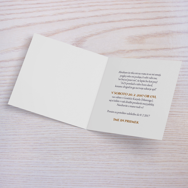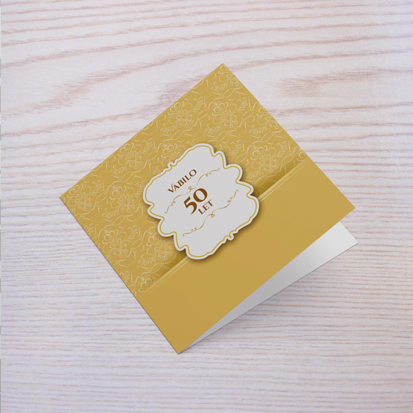 Vabilo z v zlati barvi.Poljubno lahko prilagodite tekst.Vabilo 14x14cm, 1x zgibano.