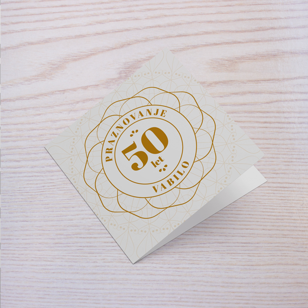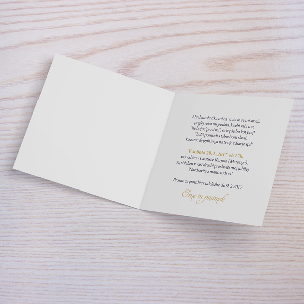 Vabilo z v beli barvi z zlatim vzorcem.
