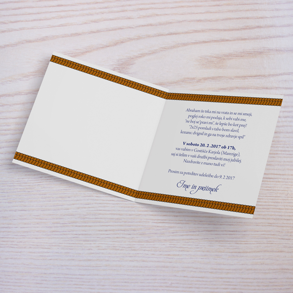 Vabilo z morskim vzorcem.Poljubno lahko prilagodite tekst in dodate fotografijo.Vabilo 14x14cm, 1x zgibano.